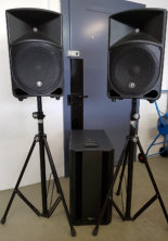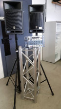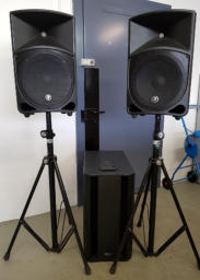 Yamaha Stegepass 300 System. Ideal für kleine Veranstaltungen bis zu 80 Personen. Einsetzbar für Geburtstage, Schulungen mit Videopresentatinen oder Abdankungsfeiern. Tagesmiete Fr. 60.00