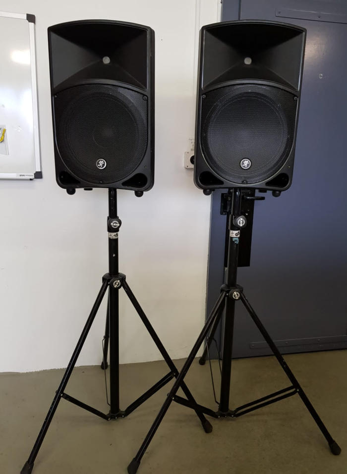Makie Thump 12 aktiv Set. Einsatz bis 100 Personen. Auch für kleinere Referate einsetzbar.Tagesmiete Fr. 60.00 das Paar inkl. Boxen- Ständer.